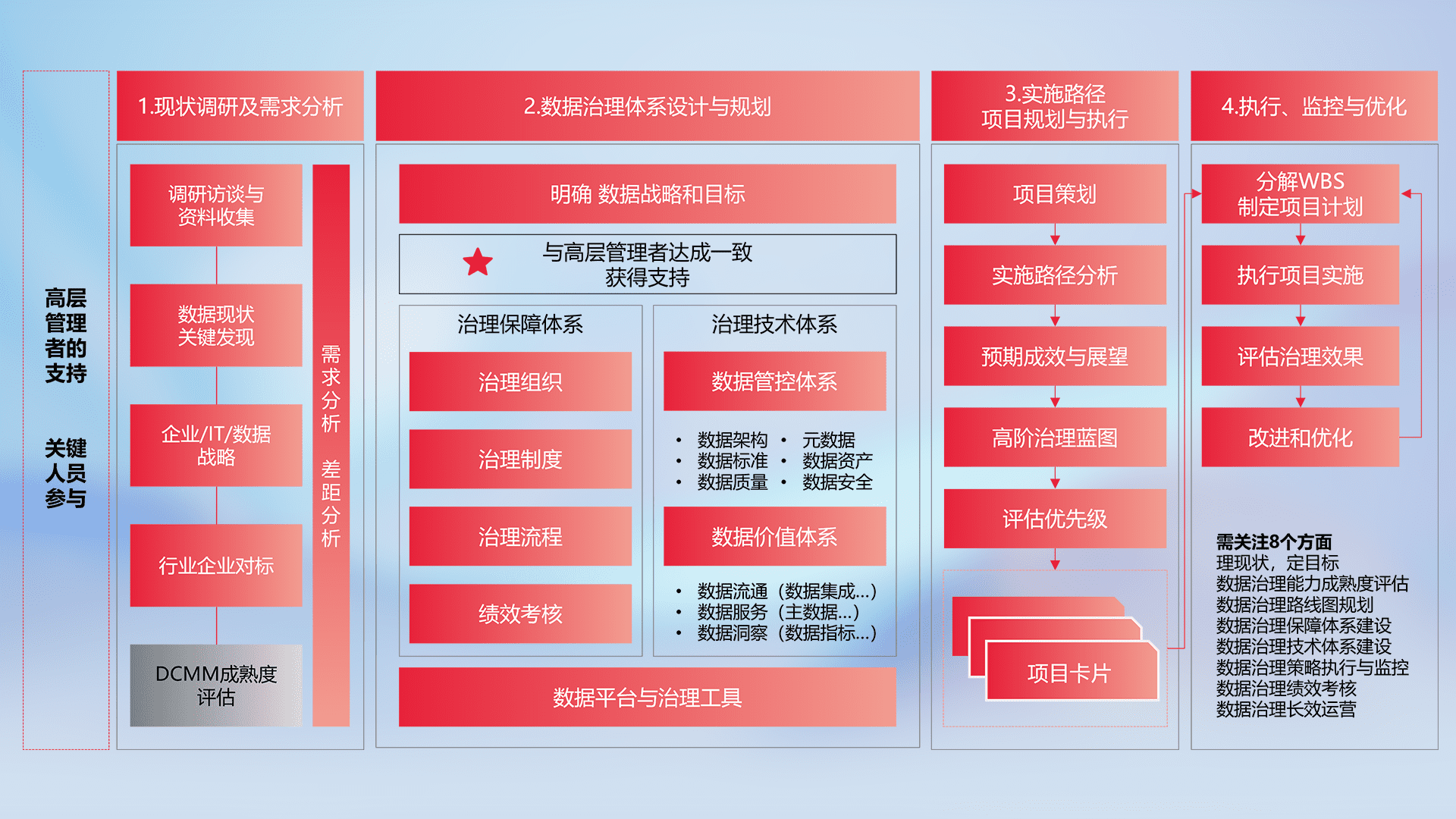 制定并执行统一的数据标准,,,,规范数据定义和格式,,消除冗余和不一致性,,,,实现跨部门和跨系统的数据一致性,,,为企业提供标准化的数据基础。。。。